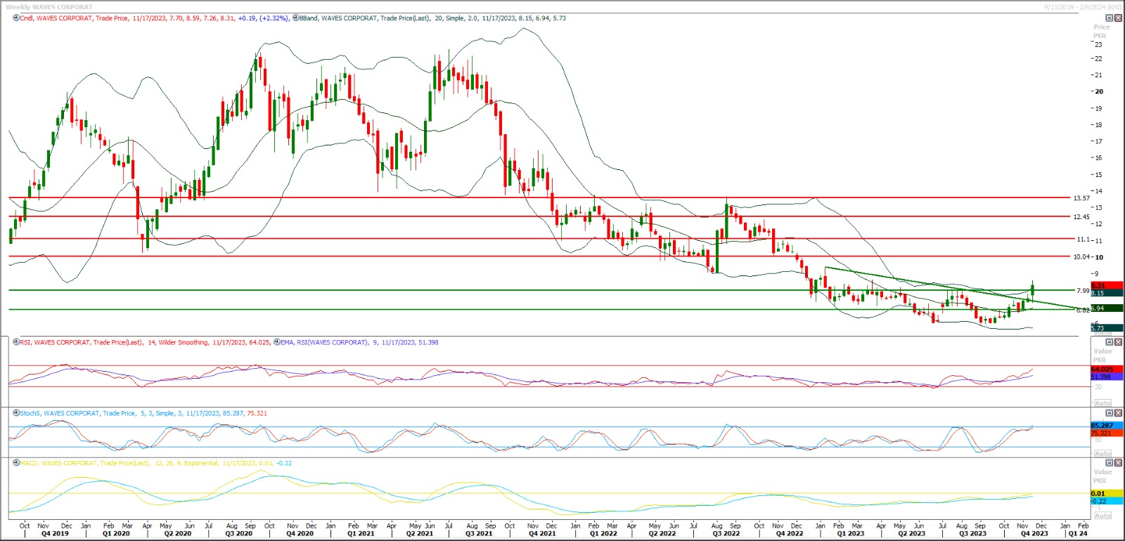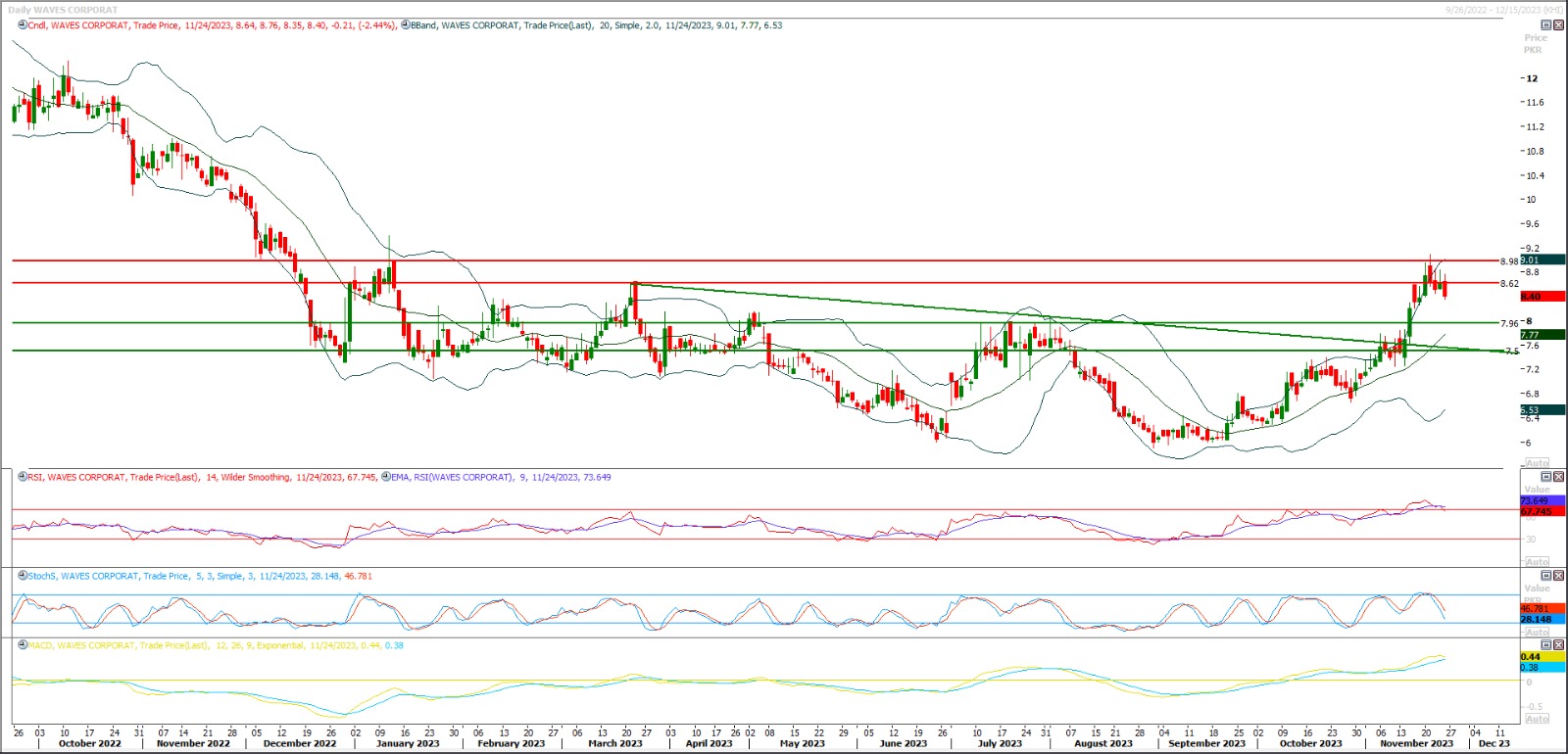 Buy above 8 with strict stop loss of 7.50 and profit targets at 8.60 and 9.